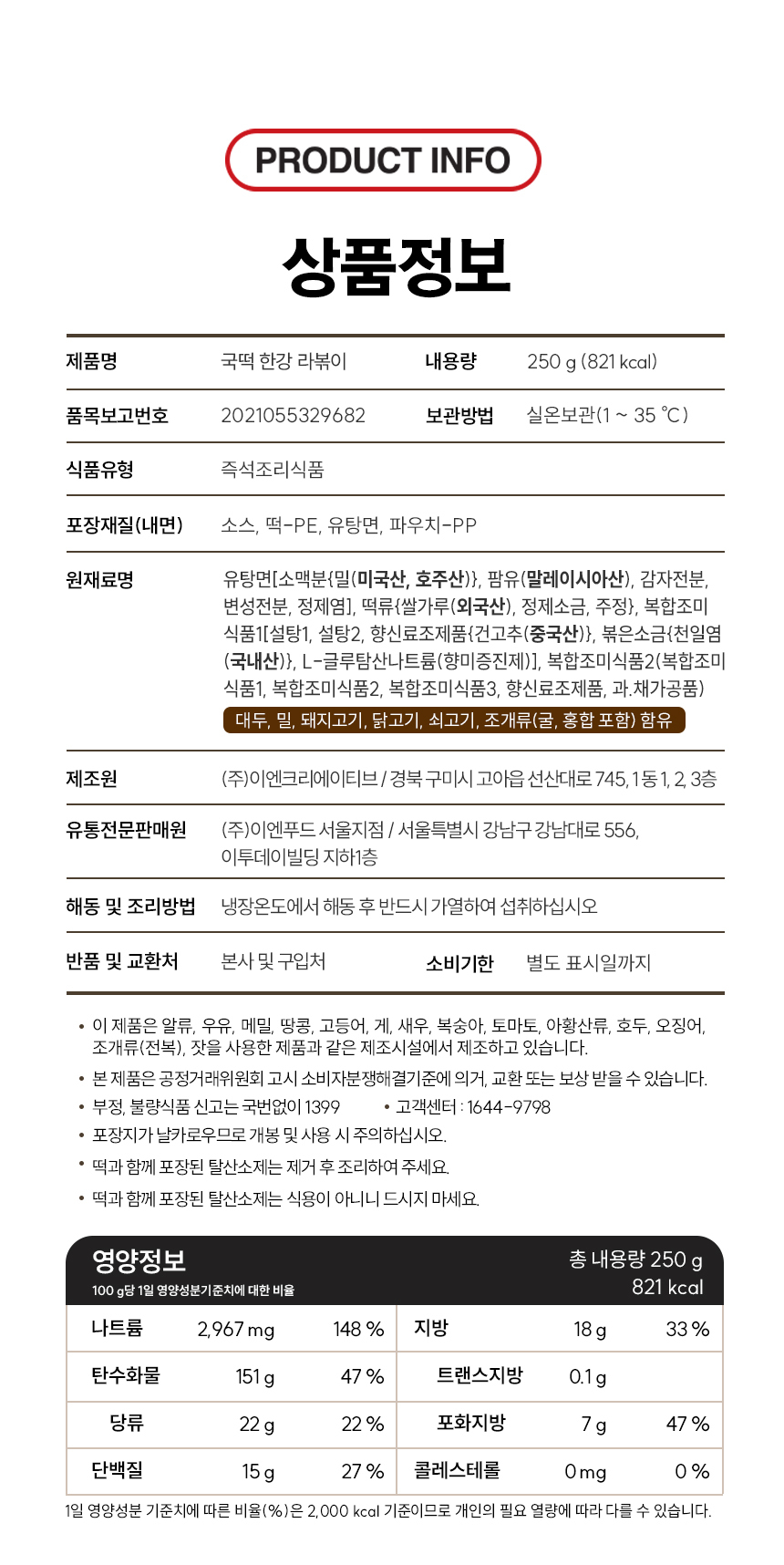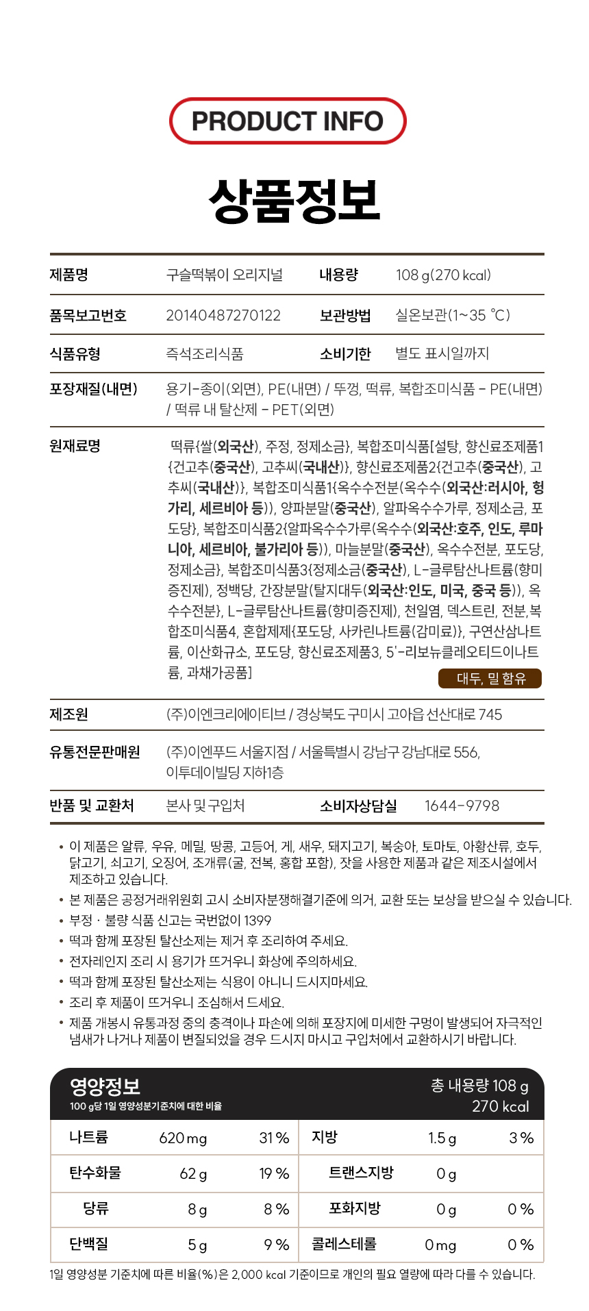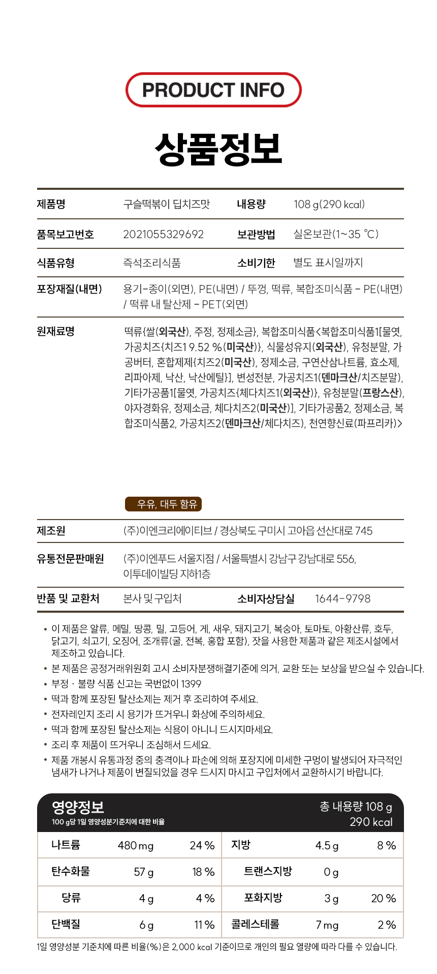 식품상품은 상품가치 하락으로 모두 폐기 처분되므로 단순 변심으로 인한 반품/교환은 불가 합니다. (, 상품불량/오 배송 제외)